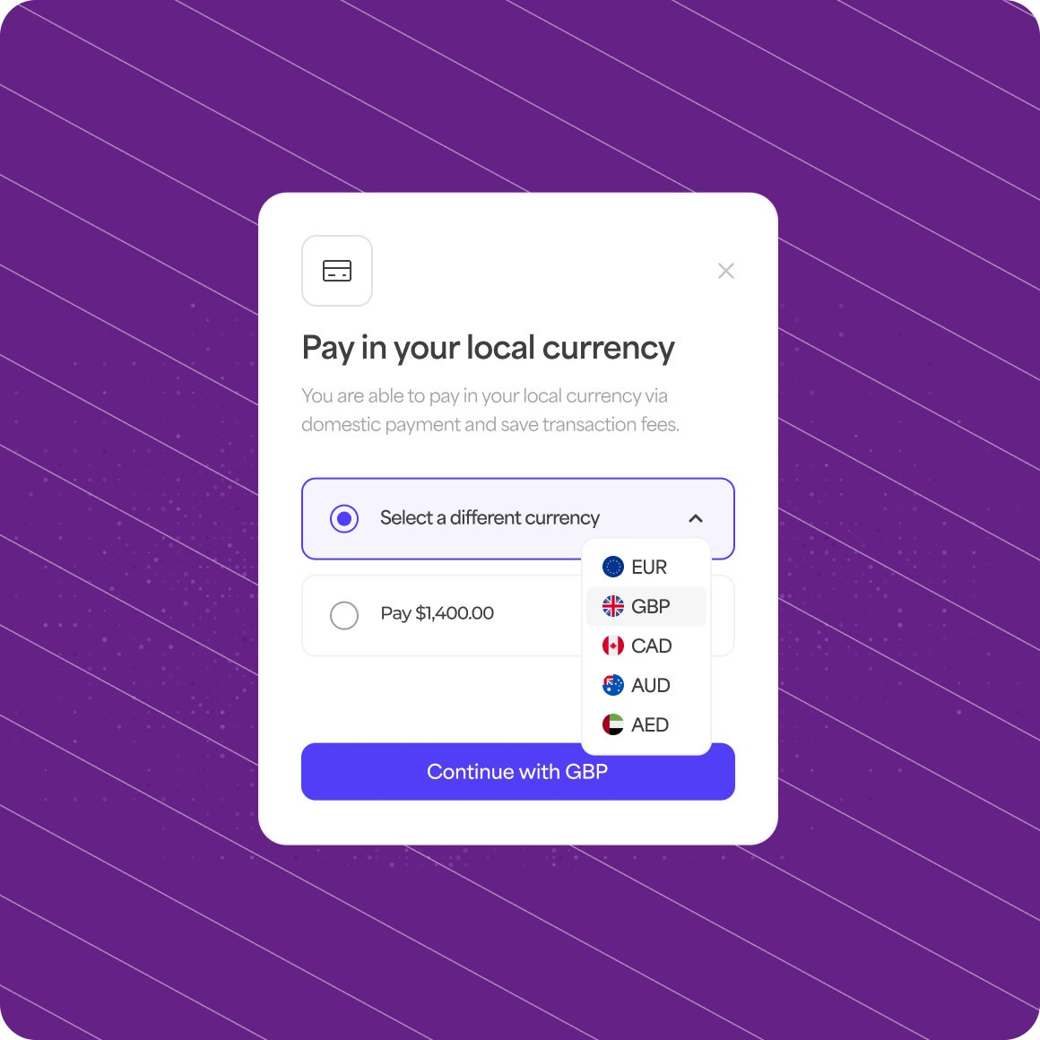 Lower payment costs and increase customer lifetime value by accepting payments across multiple currencies and payment methods